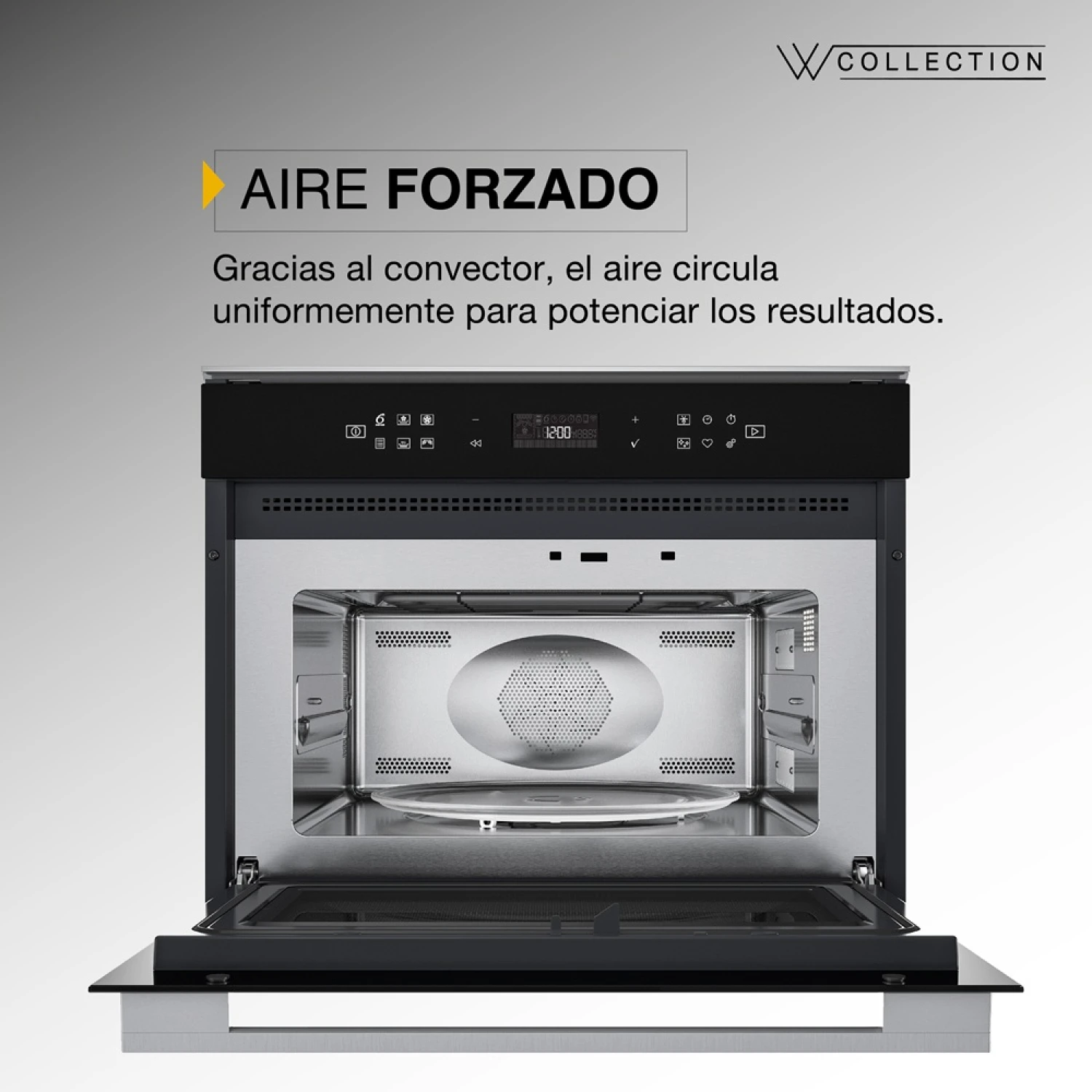 Gracias a la tecnología Aire Forzado, un flujo de aire precalentado se distribuye en tu microondas utilizando un innovador sistema de convección.